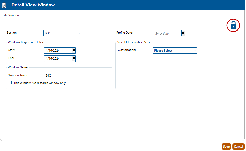 9. Select the This Window is a research window only checkbox if the window is a research window which allows for overlapping window dates.